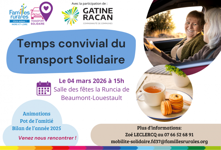 Dans le cadre du dispositif de Mobilité Solidaire mis en place sur la Communauté de Communes Gâtine-Racan depuis 2020, les élu-es du territoire sont convié.es au temps convivial et bilan de l’année 2025 écoulée. Cet évènement se tiendra le 04 mars 2026 à la salle des fêtes La Runcia à Beaumont-Louestault, lors de la rencontre…